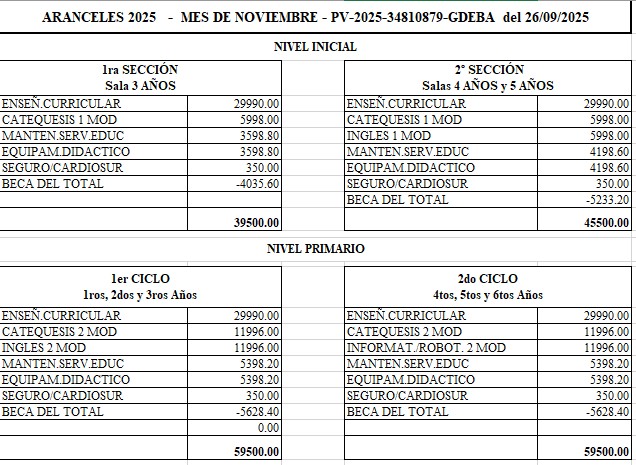 El colegio, por recibir subvención estatal, tiene un cupo de becas a otorgar entre el alumno cada ciclo lectivo.